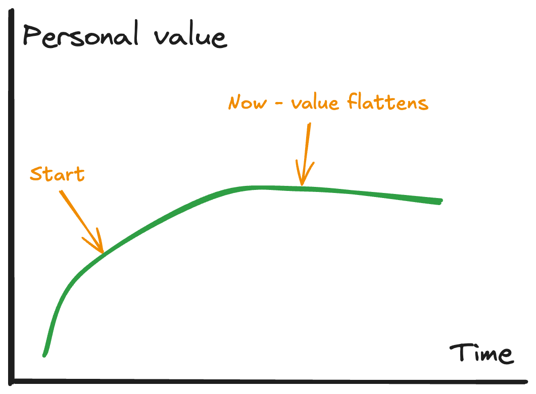 Iāve run into the classic economics marginal utility chart. The marginal utility of focusing all my effort on the newsletter isnāt as high as when I started.
