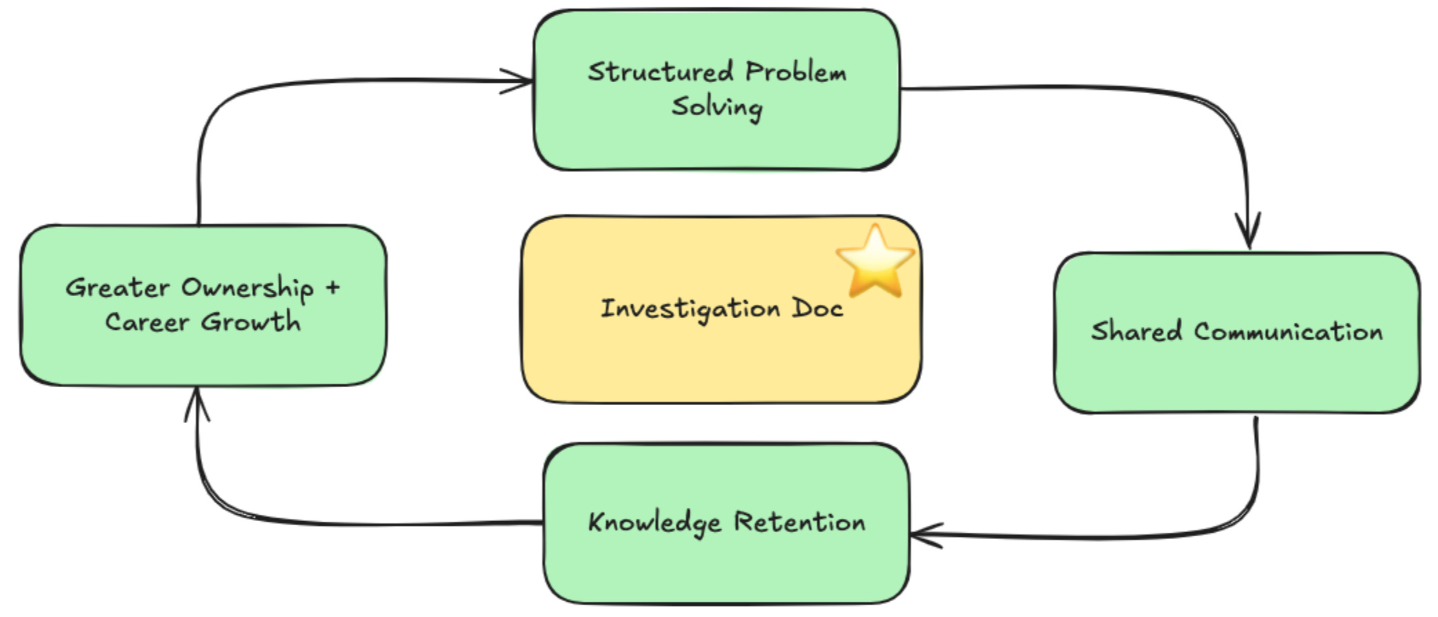 Learning Tool: Investigation docs serve as excellent learning resources for the team, helping prevent similar issues in the future and speeding up resolution times.