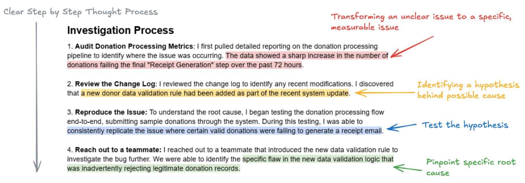 They forced me to step back, clearly document the issue at hand, and list out the investigation steps I’d already taken. This process helped me organize my thoughts and quickly identify new hypotheses to test. Eventually, I was able to pinpoint the root cause.