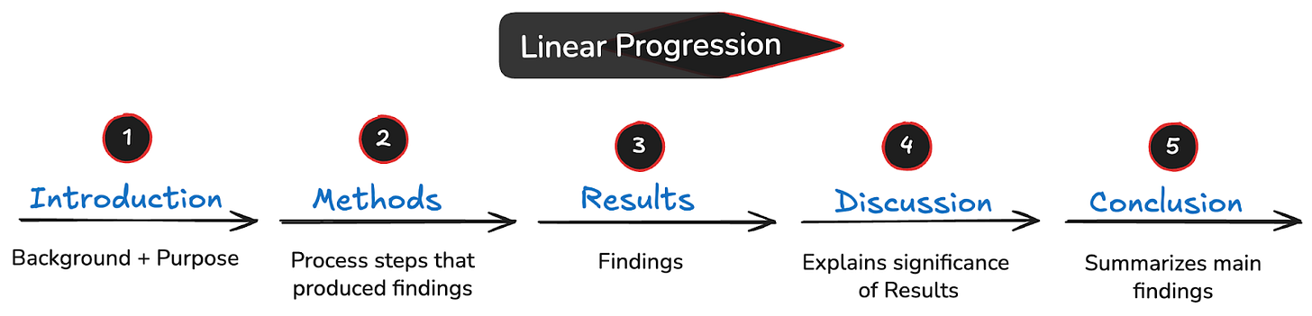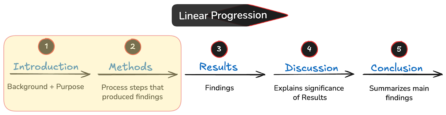 Sequence is the order of sections in your story and the job of each section. The following guiding principle will help you determine the most impactful order for presenting the substance of your story: